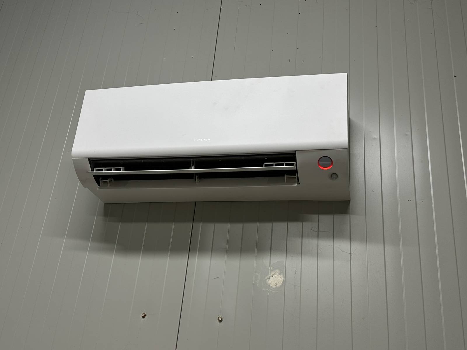 L’installation a été réalisée sur un panneau isolant, ce qui garantit une bonne stabilité mécanique tout en préservant l’enveloppe thermique du bâtiment. Grâce à la technologie Inverter de Daikin, la climatisation ajuste en continu sa puissance selon la température ambiante, assurant un fonctionnement silencieux et économe.